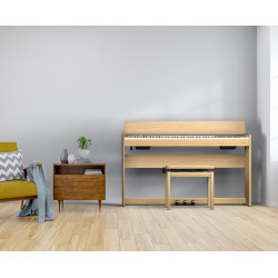 Si vous décidez d'apprendre ou de vous remettre à jouer du piano, il vous faut un instrument adapté à votre style. Certains pianos traditionnels peuvent sembler incongrus dans des pièces à la décoration moderne, mais le F701 est conçu pour elles et propose un meuble stylé, discret et compact, qui s'installe facilement dans les espaces les plus réduits. Et bien que son minimalisme esthétique se fonde dans le décor tout en le rehaussant, le F701 constitue un instrument de musique fier et imposant.